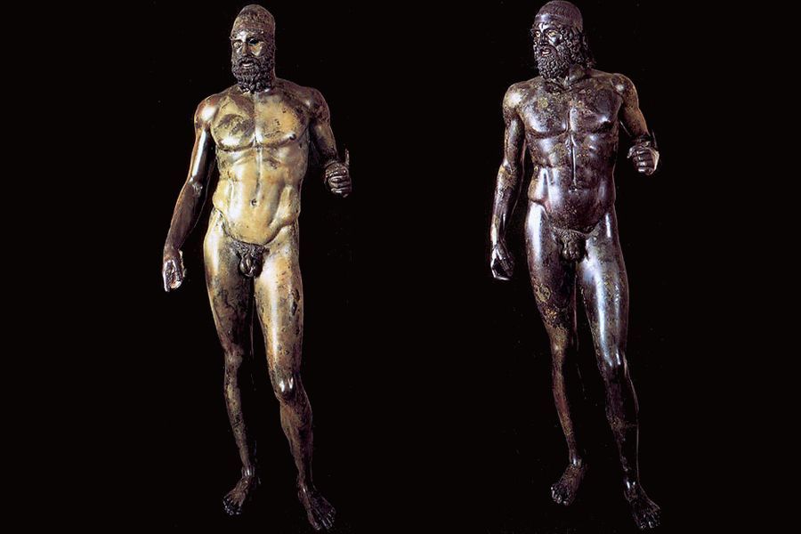 I Bronzi di Riace furono scoperti casualmente nel 1972 da un subacqueo al largo delle coste di Riace, un comune vicino a Reggio Calabria. Le statue raffigurano due guerrieri greci, probabilmente degli atleti, e sono realizzate con una tecnica chiamata "a cera persa". Sono di dimensioni quasi naturali, con una ricchezza di dettagli anatomici e un realismo sorprendente.